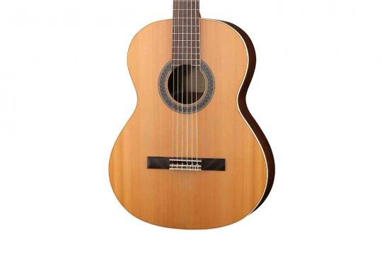 Как и все модели Alhambra, гитара изготовлена вручную из отборных пород древесины. Для верхней деки использован массив кедра, а для обечайки и задней деки — красное дерево (сапеле).